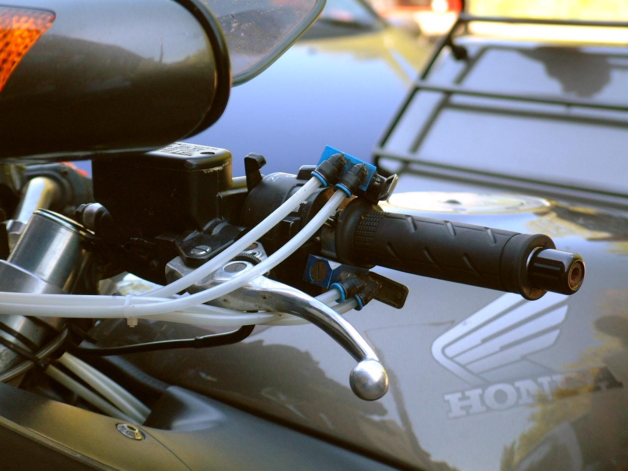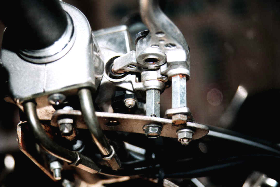 Die Bilder zeigen den Umbau einer Seilzugbetätigten Fußbremse auf hydraulisch Betätigung vom Lenker an einer Suzuki Marauder. Dieser Umbau konnte allein vom Funktionsprinzip nicht funktionieren (von der technischen Ausführung mal ganz abgesehen) und hat nach einigen Monaten angefangen sich aufzulösen. Mein TÜV - Prüfer hat einen hysterischen Anfall bekommen ! Ausgeführt von einen sogenanntem "Fachmann" [ den Namen darf ich leider nicht nennen :-( ] Die folgenden Bilder zeigen die Betätigung einer unprofessionell montierten Pneumatischen Schaltung. [ von selben "Fachmann" ]